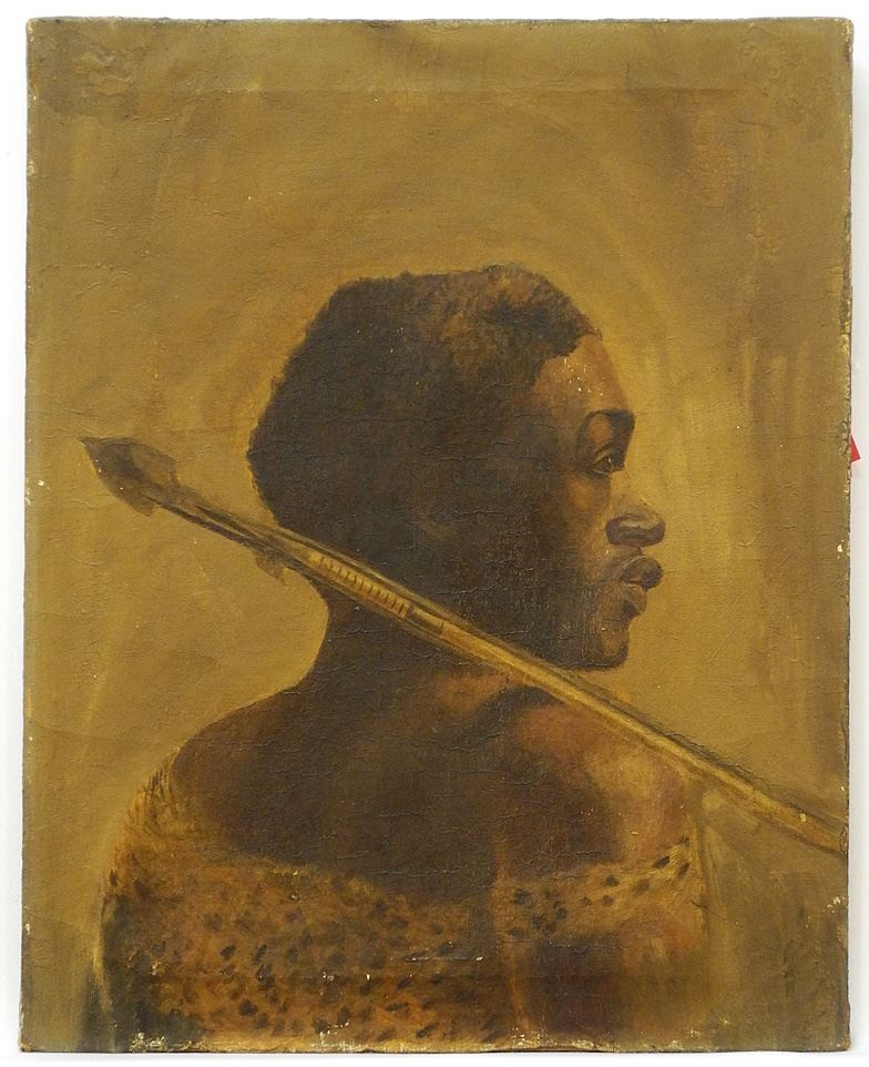 LOT 141 Unsigned Oil on Canvas, 20 x 16", "Zulu Man in profile with Spears". Estimate: $50 - $100 Sold For: $225 Auction Date: Tuesday, July 25 2023 at 4:00 PM