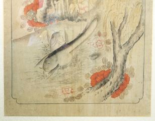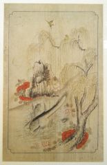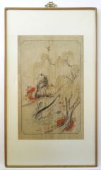Chinese Ink & Colour Painting, 22 1/4 X 13 7/8", Landscape with River and Sturgeon