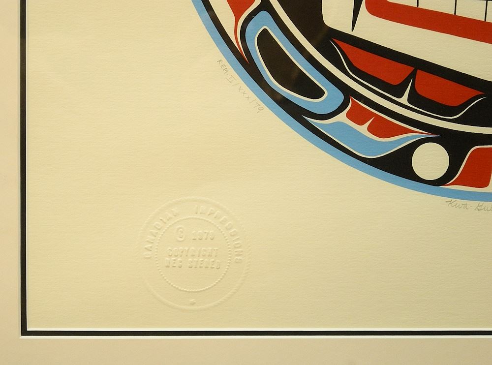 LOT 9 Serigraph signed Stan Hunt '79, 18" x 18", "Kwa-Gulth Moon". Estimate: $200 - $400 Sold For: $150 Auction Date: Tuesday, July 25 2023 at 4:00 PM