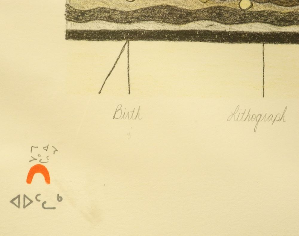 Dorset Lithograph signed Mary Pudlat , Sheet, 18 1/4" x 20", "Birth".