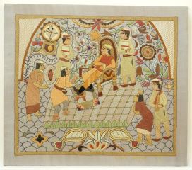 LOT 136 Naksha Kanta Bengali Textile Panel, "Bureaucratic Scene with Goverment Official", 14" x 16". Estimate: $50 - $100 Auction Date: Tuesday, July 25 2023 at 4:00 PM