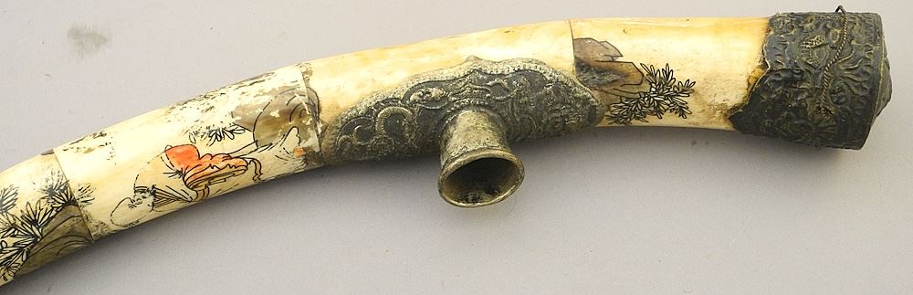 LOT 196 Chinese Metal Mounted Tessellated Bone Opium Pipe, 19 5/8"L, NO EXPORT Estimate: $60 - $100 Sold For: $70 Auction Date: Tuesday, July 16 2024 at 4:00 PM