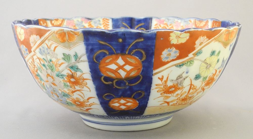 LOT 2 Japanese Imari Lobed Bowl, 4 1/2" x 9 7/8" Diameter. Estimate: $50 - $60 Sold For: $45 Auction Date: Tuesday, July 16 2024 at 4:00 PM