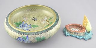 LOT 274 Chinese Cloisonne Bowl (9 1/4"diam) & Porcelain "Vegetable" Ashtray, 5" w. Estimate: $80 - $120 Auction Date: Tuesday, April 15 2025 at 4:00 PM