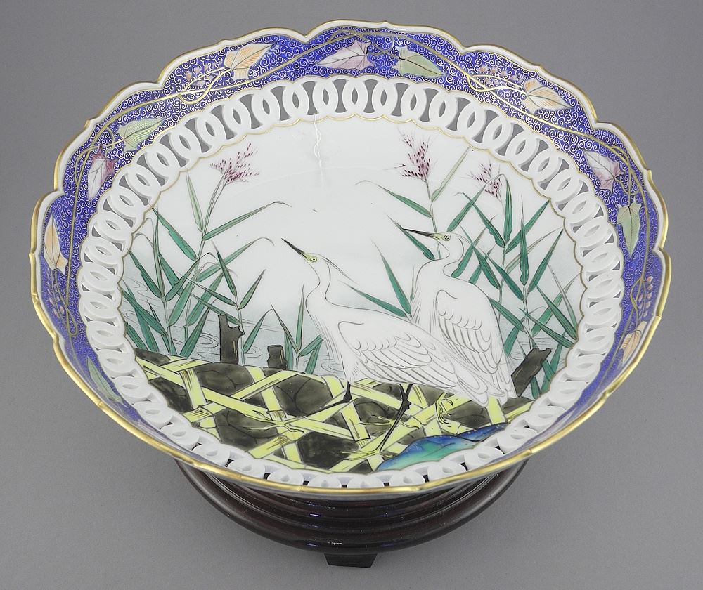 Japanese Porcelain Reticulated Bowl (12 1/4" diam.) with Stand.