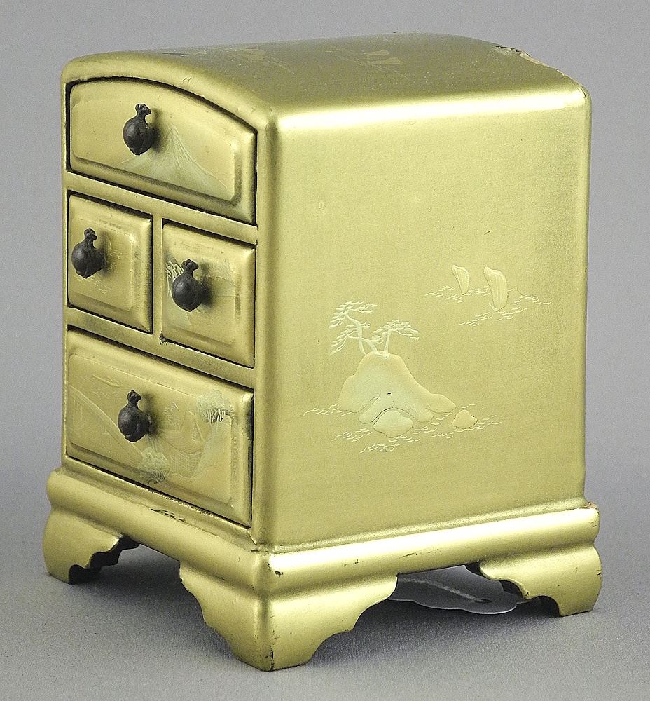 LOT 170 Japanese Lacquer Miniature Chest of Drawers, 3 3/8"h. Estimate: $60 - $100 Sold For: $60 Auction Date: Tuesday, April 15 2025 at 4:00 PM