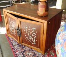 Two Chinese Pine Inlaid Double Door Cabinets, 30"w.