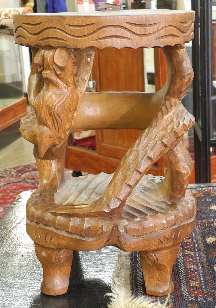LOT 290 Indonesian Carved Hardwood Stool, 18"h (splitting noted). Estimate: $50 - $60 Auction Date: Tuesday, April 15 2025 at 4:00 PM