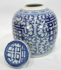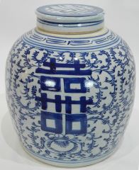 Chinese Blue & White Porcelain Covered Jar, 10 5/8"h.