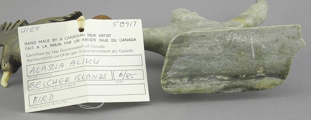Two Inuit Figures: Bird by Alasua Aliku (9 3/5") & Restored Figure by P. Karik.