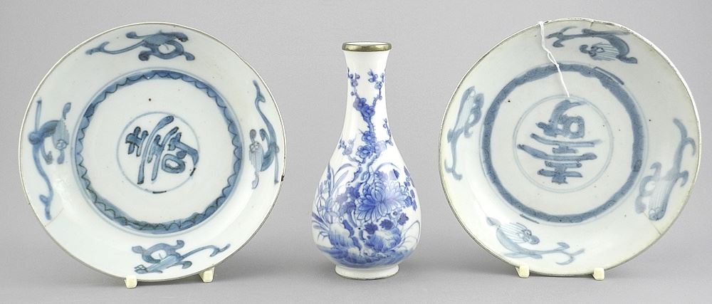 Collection of Metal Bonded & Other Chinese Blue & White Porcelain Vases , 5 1/8", (condition noted