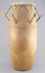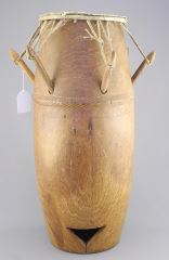 LOT 66 Ghanaian Wooden Peg Drum, 18"h x 8" Diameter. Estimate: $50 - $60 Auction Date: Tuesday, April 15 2025 at 4:00 PM