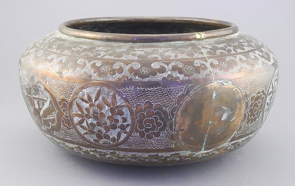LOT 121 Chinese Copper Brazier, 11" Diameter Estimate: $150 - $300 Sold For: $90 Auction Date: Tuesday, April 15 2025 at 4:00 PM
