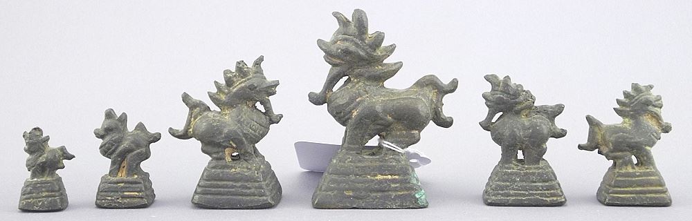 Set of Six Burmese Lion Shaped Opium Weights, 1 1/8 - 2 5/8"h, 580g.
