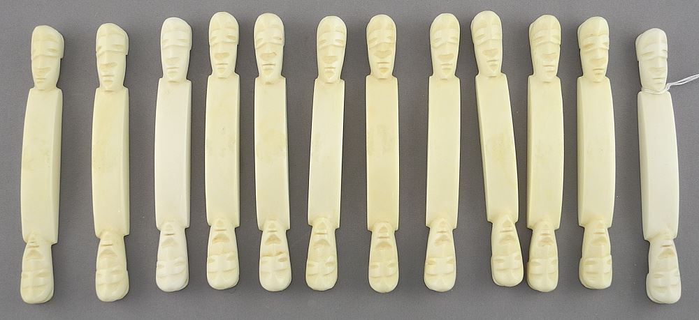 LOT 81 Twelve Carved African Knife Rests, 4"h, NO EXPORT. Estimate: $100 - $200 Sold For: $200 Auction Date: Tuesday, April 15 2025 at 4:00 PM