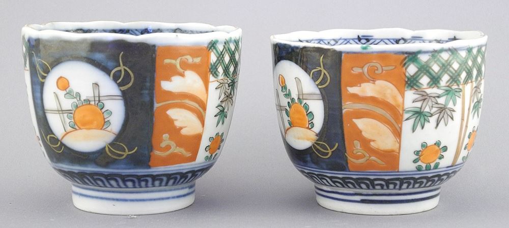 LOT 298 Pair of Japanese Imari Porcelain Cups, 2 5/8 x 3 3/8 Diameter. Estimate: $50 - $60 Auction Date: Tuesday, April 15 2025 at 4:00 PM