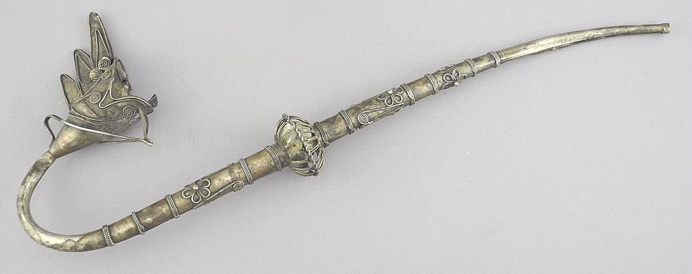 Nepalese White Metal Tobacco Pipe, 13 1/4".