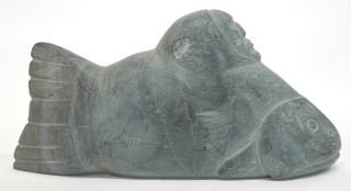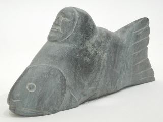Unsigned Inuit Stone Sculpture, 10 1/8"L, "Fish Transforming to Man"