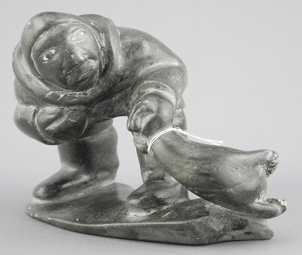 Two Inuit Stone Carvings signed Nowya, 4 & 5", "Hunters with Seals".
