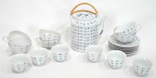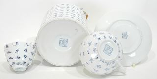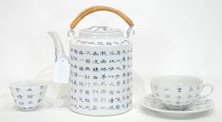 Japanese Porcelain "Calligraphy" Lithophone Porcelain Tea Set, Pot 6 3/8"h.