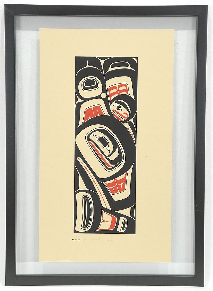 LOT 26 Haida Serigraph signed Robert Davidson, 17 1/2 x 10", "Killer Whale" #160/295. Estimate: $700 - $900 Sold For: $700 Auction Date: Tuesday, April 15 2025 at 4:00 PM
