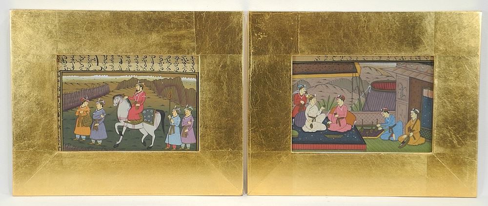 Five Persian Manuscript Paintings Approximately 8 1/2 x 5 1/4".