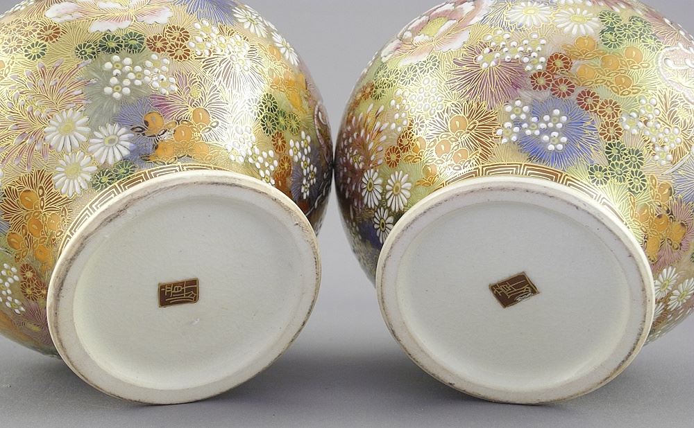 Pair of Satsuma Squat Baluster Vases (4"h) with Stands.
