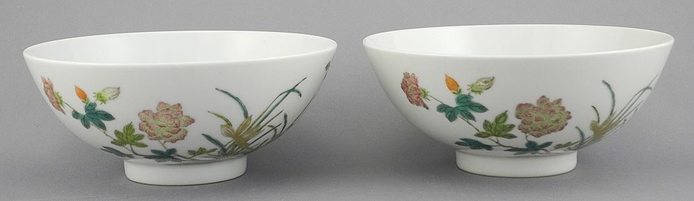 Pair of Chinese Gold Embellished Porcelain Bowls, Daoguang Mark, 2 3/8 x 5 3/4" Diam.