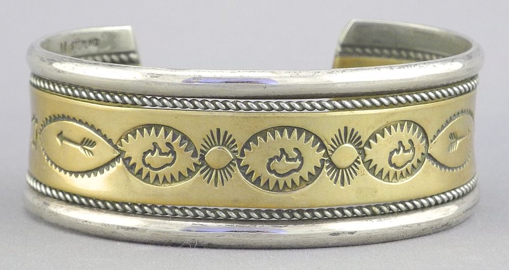"M" Sterling & 12 KGF Navajo Cuff Bracelet, 37.59g.