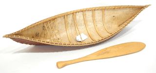 Birch Bark Canoe with Paddle, 21 1/4"L.