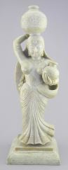 South Asian Carved Marble Statue of a Water Carrier, 16 3/4"h.