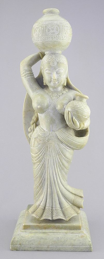 LOT 24 South Asian Carved Marble Statue of a Water Carrier, 16 3/4"h. Estimate: $100 - $200 Auction Date: Tuesday, April 15 2025 at 4:00 PM