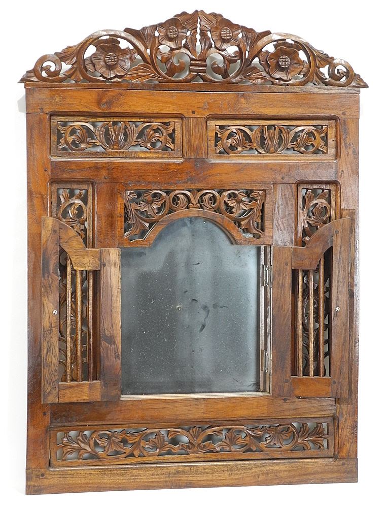 Malaysian Carved Wood Shuttered Mirror, 33"h.
