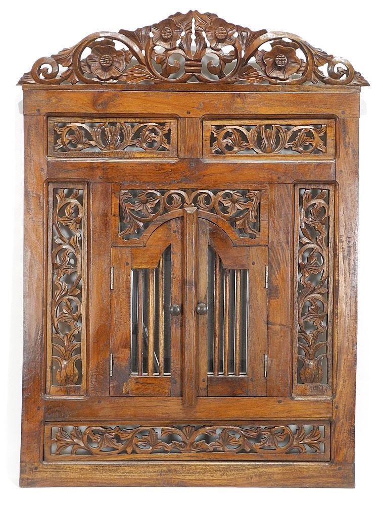 LOT 137 Malaysian Carved Wood Shuttered Mirror, 33"h. Estimate: $60 - $100 Sold For: $50 Auction Date: Tuesday, April 15 2025 at 4:00 PM