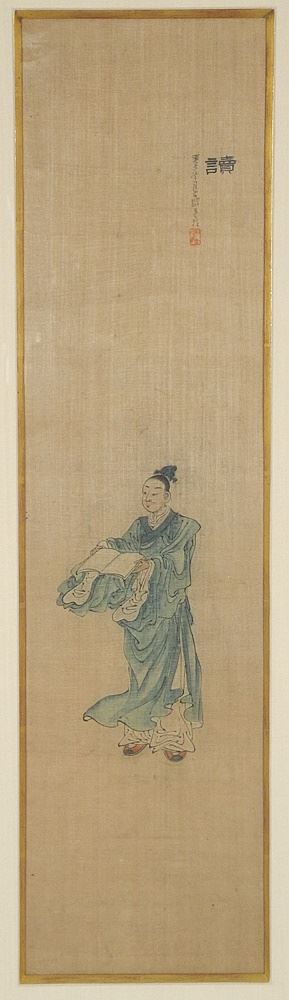 Chinese Ink & Colour on Paper, 23 1/2" x 5 3/4", "Figure with Open Book".