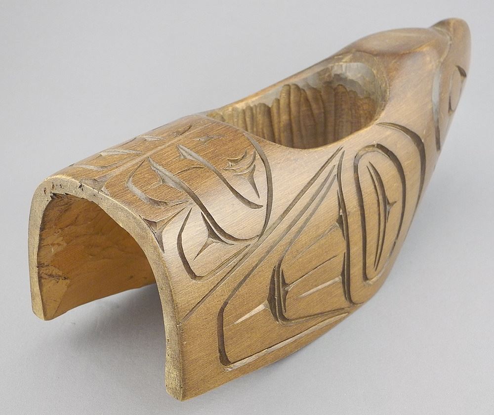 Squamish Carving signed Stephen Charlie, 11 3/4"L, "Eagle Bowl".