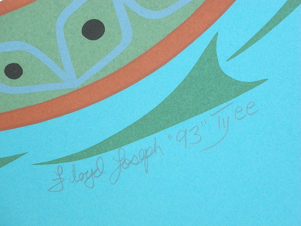 LOT 332 Serigraph signed Floyd Joseph'93 Tyee, 17 x 16 5/8", "Salmon People", A/P 3/18. Estimate: $150 - $200 Sold For: $90 Auction Date: Tuesday, April 15 2025 at 4:00 PM