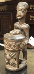 LOT 287 Bamileke Chief's Carved Wood "Earth Spider's" Figural Box, Cameroon 1920's, 14 3/8"h. Estimate: $80 - $140 Sold For: $70 Auction Date: Tuesday, April 15 2025 at 4:00 PM