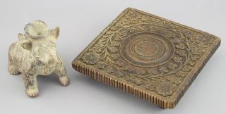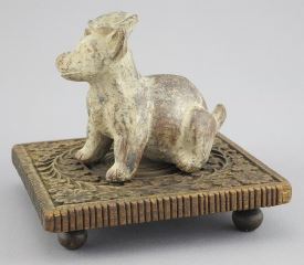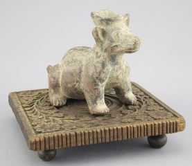 LOT 275 Pre-Columbian-Style Pottery Dog (3 1/8") Figure & Carved Stand. Estimate: $50 - $60 Auction Date: Tuesday, April 15 2025 at 4:00 PM