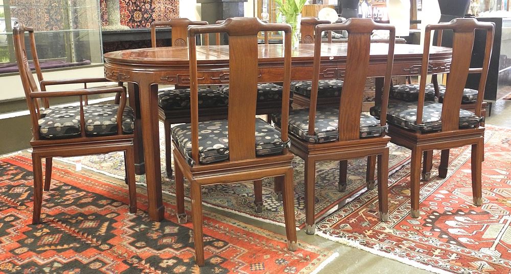 Chinese Rosewood Dining Room Suite, 44" Diameter When Closed.