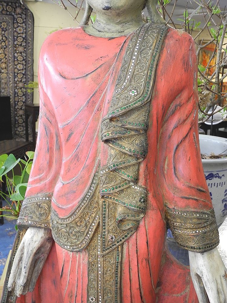 LOT 55 Thai Polychromed & Jeweled Wood Figure of the Buddha, 62"h. Estimate: $600 - $1,200 Auction Date: Tuesday, April 15 2025 at 4:00 PM