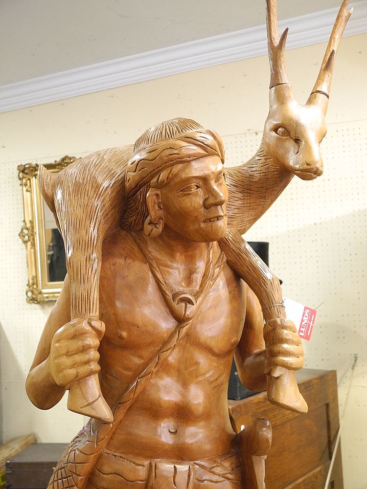 LOT 189 Carved Hardwood Figure of an Amazonian Hunter, 43"h. Estimate: $60 - $100 Sold For: $60 Auction Date: Tuesday, April 15 2025 at 4:00 PM