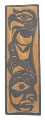 LOT 150 Salish Plaque signed Steve Charlie, 24 x 7 5/8", "Eagle & Man". Estimate: $60 - $100 Sold For: $50 Auction Date: Tuesday, April 15 2025 at 4:00 PM