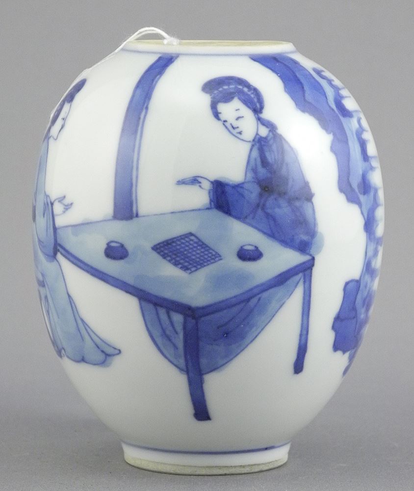 Chinese Kangxi-Style Porcelain Oviform Vase, 3 5/8"h.