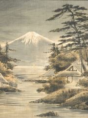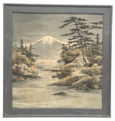 Japanese Painting on Textile, 21 x 20", "Mount Fuji".
