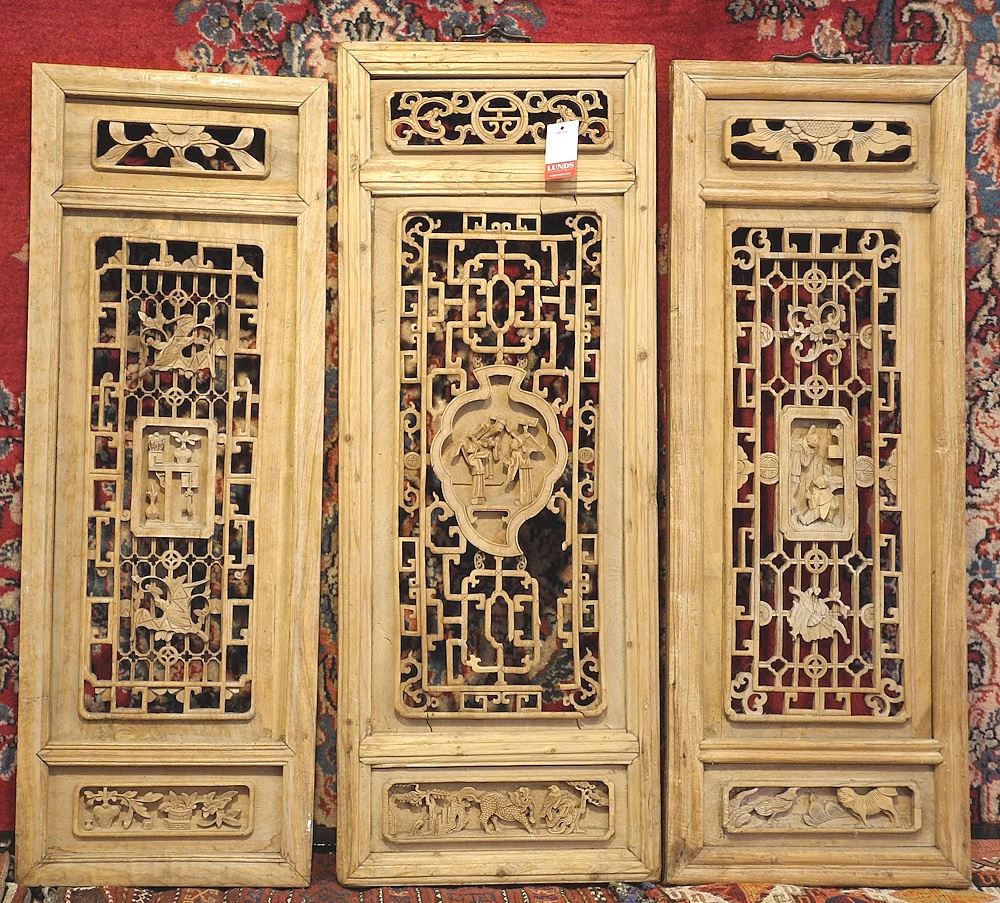 LOT 136 Pair + One Chinese Lattice Work Panels, 38 1/4 x 14 5/8 x 1 1/4". Estimate: $100 - $150 Sold For: $100 Auction Date: Tuesday, June 03 2025 at 4:00 PM