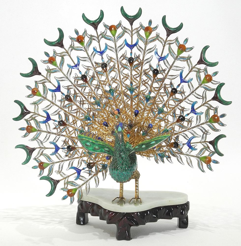 LOT 315 Chinese Cloisonne Filigree & Enamel Peacock, 2 Sections with Box, 11 3/4 ". Estimate: $300 - $350 Auction Date: Tuesday, June 03 2025 at 4:00 PM