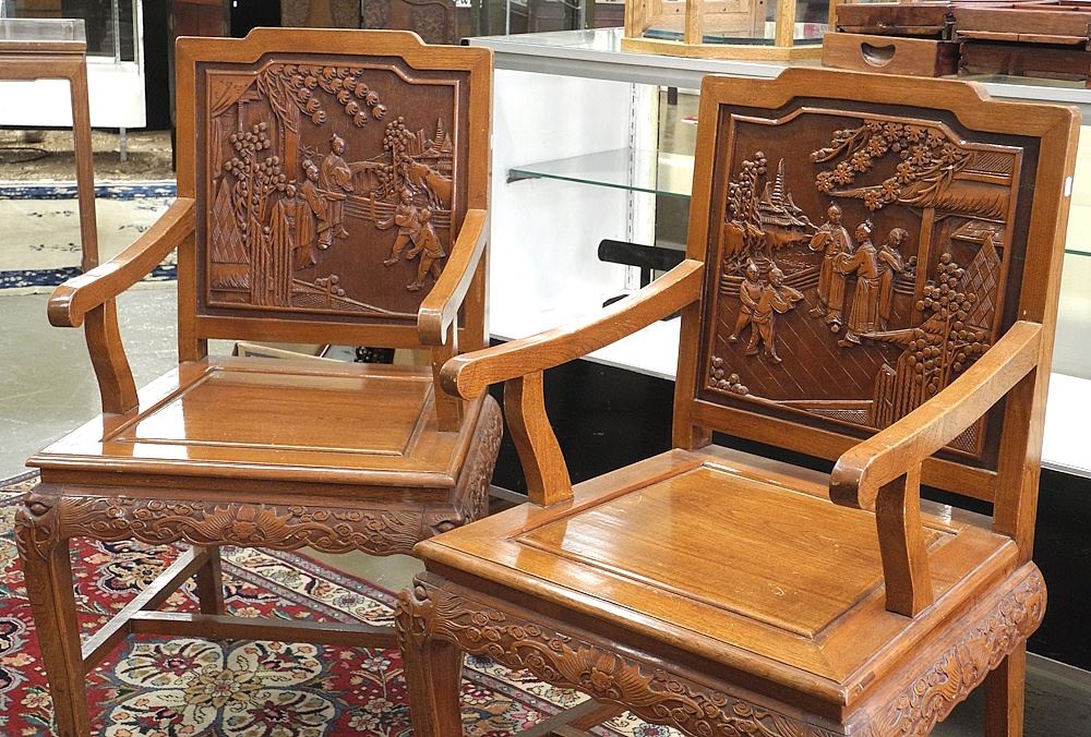 LOT 265 Pair of Hong Kong Armchairs, 40 1/4 "h. Estimate: $80 - $120 Sold For: $90 Auction Date: Tuesday, June 03 2025 at 4:00 PM
