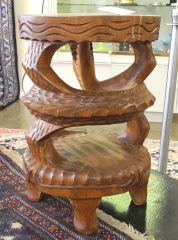 LOT 51 Indonesian Carved Hardwood Stool, 18"h (splitting noted). Estimate: $50 - $60 Sold For: $40 Auction Date: Tuesday, June 03 2025 at 4:00 PM