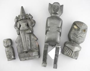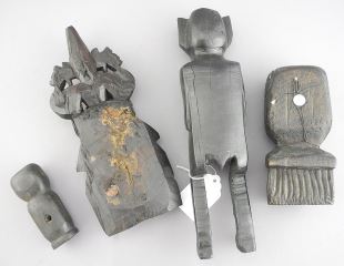 Four Carved Wood Ethnic Votive Figures, 3 1/8 - 9"h.